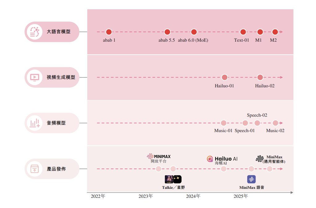 经过四年发展,MiniMax 已构建起覆盖多场景的产品矩阵:智能 Agent 应用 MiniMax、视觉生成平台海螺 AI、音频生成工具 MiniMax 语音、全模态交互平台 Talkie / 星野,成为国内罕见在语音、视频、文本、音乐四大模态均达到国际领先水平的企业。