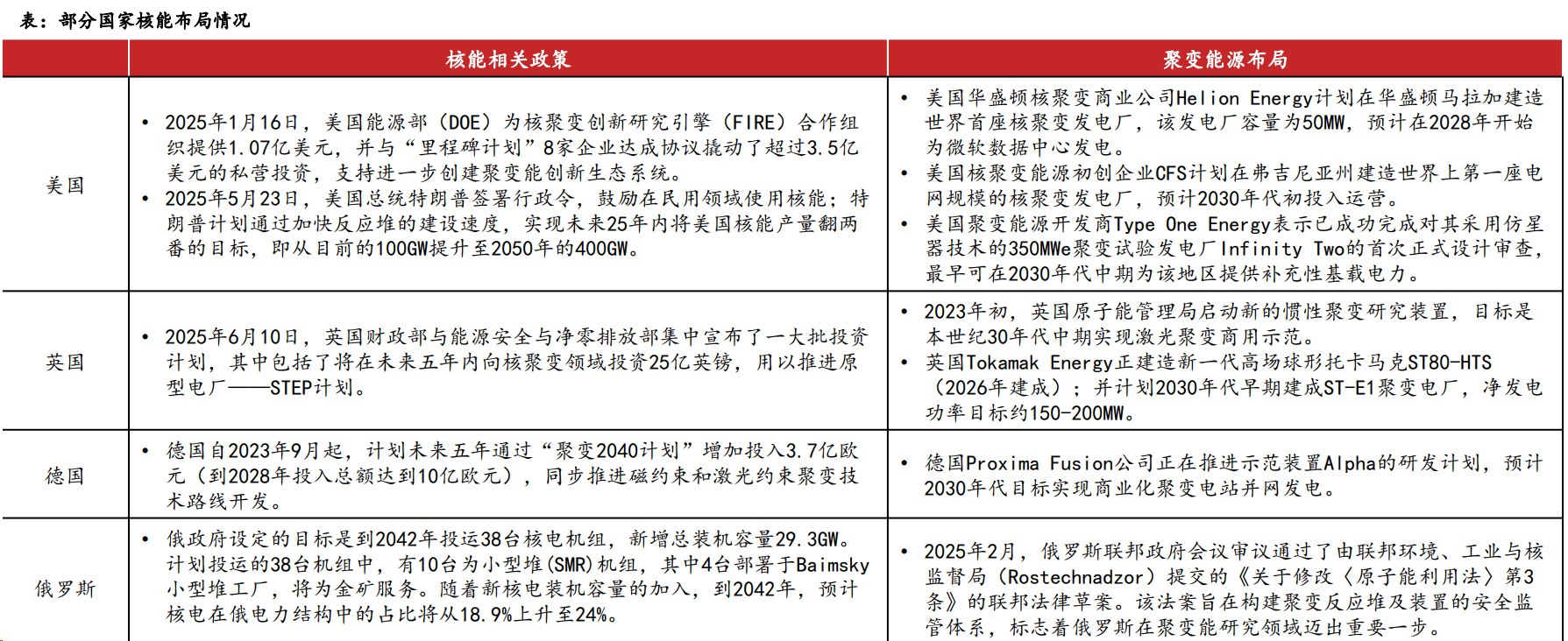从海外来看,2025年2月,美国Helion Energy计划在建造世界首座核聚变发电厂,预计在2028年开始为微软数据中心发电。2025年6月,谷歌母公司Alphabet与联邦聚变系统公司(CFS)签署了200兆瓦核聚变电力采购协议。同时,英国、德国、俄罗斯等积极推动聚变电站布局。