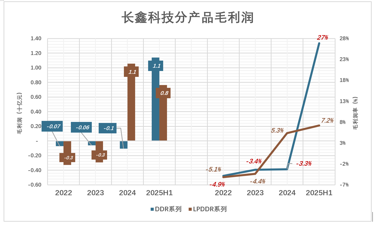 细究来看,2024年之前长鑫科技两个系列的产品毛利润率都为负。
