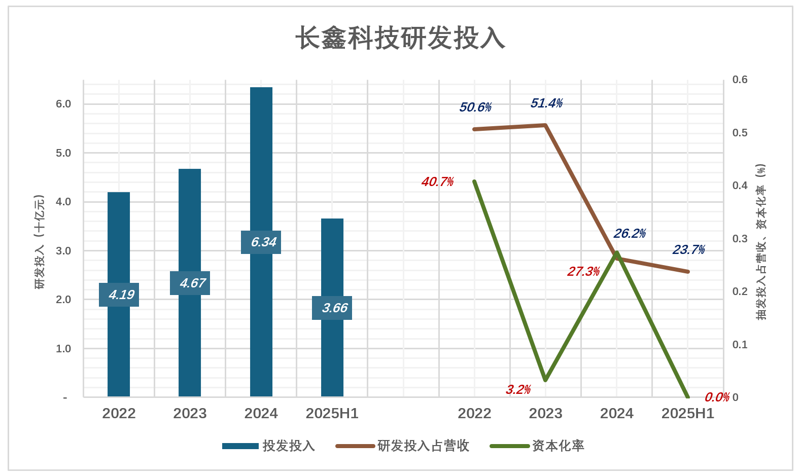 2024年,长鑫科技营收暴涨,尽量研发投入提高到63.4.但占营收入比例反而降到26.2%;