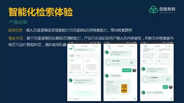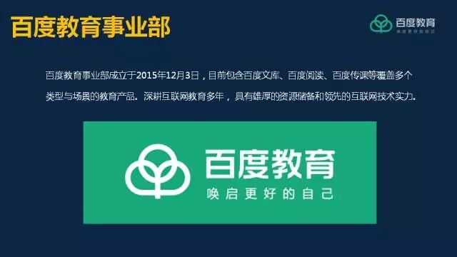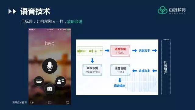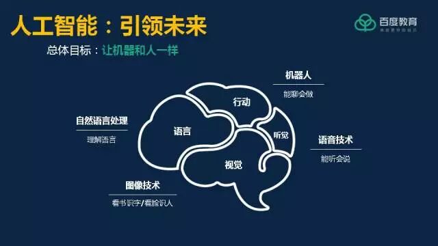 以下为杜哲演讲内容,由SmartShow创新社整理 很多人会问我,人工智能会不会取代我们?人工智能在我们这个时代,我们应该怎么去应用它。所以带着这些疑问,我跟大家分享一下,人工智能,其实我们是这样理解它的。 我们有一个非常重要的目标,就是人工智能它最终是要服务于我们人类的。那么它不仅仅是学习人类的一些行为,理解人类的一些思维,更重要的是我们的人工智能需要让它像人一样,能够去解决我们面临的实际的问题,所以我们会认为在人工智能领域有以下四个技术是非常重要的,首先就是我们的视觉,人工智能能够让我们人一样看书识字,看脸识人。其次是语言,人工智能能够像人一样去理解我们的语言去分析,还可以做出下一步的决策,同时还有语音技术,这块当然大家都使用的比较多,像讯飞这样的公司也推出了非常好的产品,去应用语音技术,最后一步其实就是我们的机器人,很重要的一点就是说它能够跟我们聊天,接受我们的指令,按照我们预先设定好的程序,去帮我们去解决问题。 自然语言处理这门技术已发展多年,我们在“度秘”这个产品中是如何应用它的呢? 这是我们“度秘”机器人在人的指令下,我们通过了一些汉字的提示,于是他就能写出这样一首诗。这里面其实应用了非常多的技术,一般就是说我们需要把我们古代的一些大家,包括我们通过我们整理后的一些诗词资源,才通过程序把它识别出来,同时接受我们一些场景指令。 比如说这有一首诗叫“秋夕湖上”,那这里面有很重要的一点就是说机器他不能仅仅是学习我们这种语言,华丽的这些辞藻,非常重要一点的是,我们将要设定它的具体场景。比如说我现在是一个湖上,那我就根据湖要识别出来跟湖对应的一些词是哪些,比如说这里面的山、鸟、湖等,就让大家感觉这首诗它看起来就像是一个真正的诗人做出来的。大家看一下,上面就是我们人工智能写出来的诗,下面是诗人写出来的诗,其实不是很容易分辨。 这个其实就比较常见,这是我们OCR技术,目的是让机器像人一样能够看书识字,那这个产品是来自我们的有道翻译官。 其实它这里面应用到三个步骤,一个是文字的检测,首先它是奥巴马的一篇演讲稿,你能看到它识别出来IT这两个字符,在识别这个字符之后,识别出这两个字母,最后他能够进行这样一个结果的输出,这就是我们跟这个翻译技术结合在一起呈现出这样一篇中文的演讲稿。 这是我们图象识别里面一个常见的一个应用的场景,右上角的这个图其实就是我们进行人脸识别非常重要的一个环节,就是器官的定位,首先第一步要在这个图像中能够去找到是否有人脸存在。那第二步就非常重要的就是器官的定位,那器官进行定位之后就可以根据特征识别出来。 关于语音技术,我们第一步进行了声纹的识别,同时进行了语音的识别,最后把它识别成一段中文的文本,同时进行了机器翻译,最后又把它合成一个英文的文本这样输出出来,所以这其实是一个,机器和人一样,能听会说,但其实大家能想到说这样的场景其实非常适合应用在我们去国外旅游的场景上,所以说这样的语音技术它才是真正解决了我们的问题。 最后一个就是非常重要的机器人。我们有苹果手机的话,应该都应用过siri这个功能,大家会觉得它可能就是一个语音这样的工具,其实它背后应用的是一套机器人的技术理论。机器人有非常重要的一点,就是首先它要能够理解你的需求意图,其次它要能够找到合适的程序来去解决问题。那么机器人这个领域呢,实际上是比较复杂的,即便是一个非常小的场景,它也要做非常多步才能知道下一步该得出什么样的结果,所以他的教育领域其实也是非常复杂的。 我们也在思考人工智能技术,它在教育领域能够带给我们什么?通过我们不断讨论会发现,其实教育是一个非常成熟的行业,在这个行业里,其实有非常多的老师,有非常多优秀的经验,我们希望人工智能能够给我们激发学习的欲望。 那如何去激发学习的欲望?我们已经有非常多的优秀教育资源了,这样的资源以前都是通过老师传授给学生的,那我们老师有没有办法让学生更有兴趣、更有效的去学习它呢,所以这才是我们百度教育真正想做这件事儿的初衷。 那接下来给大家介绍一下百度教育在做这件事情的一个心路历程。 相信大家都对这三个产品,至少对百度文库都不陌生,百度文库是一线教师非常喜欢的一款产品,我们目前大概有1.9亿的文档,它区别于其他资源库一个非常重要的特点是:我们的资源是时时更新,每天大概会有20万的新增文档,能够去贡献到我们的互联网平台,每天有5千万老师和学生用户在我们平台上去进行在线学习。 同时百度目前有70万的教学资源能够供我们老师和学生在线学习,那第三个就是百度阅读,目前有20万本的图书资源,以上就是我们已经拥有的非常多的教育资源了,那我们思考的是说,如何把这些教育资源更好地放到教育产品中。人工智能在这里面又能起到什么样的作用? 百度在2015年12月3号成立了百度教育事业部,事业部共覆盖了3款独立的C端产品,如果说百度去做教育跟其他公司和产品有什么非常大的区别的话,我觉得主要是因为我们有非常庞大大的用户基础和用户使用习惯,所以在我们这样的基础之下,我们推出了第一款百度教育产品,也就是我今天想跟大家分享的。 这是我们的三个阶段的里程碑,第一阶