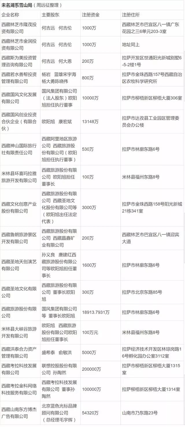 雪山圣湖将徐翔、李小白和欧阳旭在西藏的痕迹留下之外,从上世纪九十年代西藏第一只上市公司诞生之后,所有的一切都记在了“菩萨的心间”。