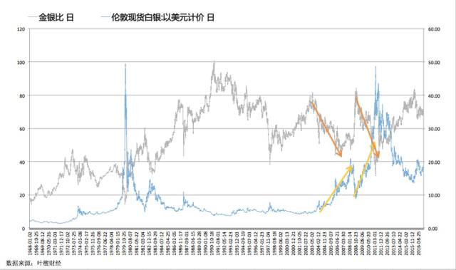 金银比的实质是将黄金货币化,白银商品化来看待,尤其是金银比的这两次触顶都是发生在商品牛市期间,白银的商品属性显露无疑。