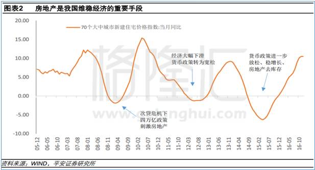 回顾历史,房地产就像一个尿壶,需要的时候就拿出来用,不需要时就藏到床底下,在国内经济增长乏力时,出台刺激计划时总是配套松开房地产市场政策,比如2008年次贷危机各地政府一改过去调控房地产,反而采取救市的政策,挽救楼市的疲态,而到2015年在货币宽松环境下刺激房地产,房地产市场成交火爆,进而带动其他上下游产业,达到经济稳增长目的。