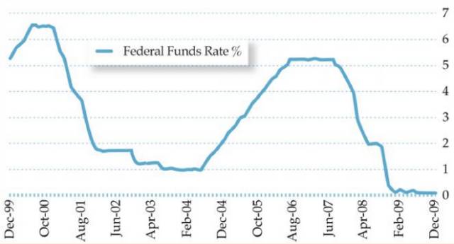 再看美国2008年次贷危机。在保持了将近三年的低位利率后,美联储于2004年启动加息周期。加息戳破了房价泡沫,2006年房价开始普遍下跌,随即引发2007-2008年的次贷危机。