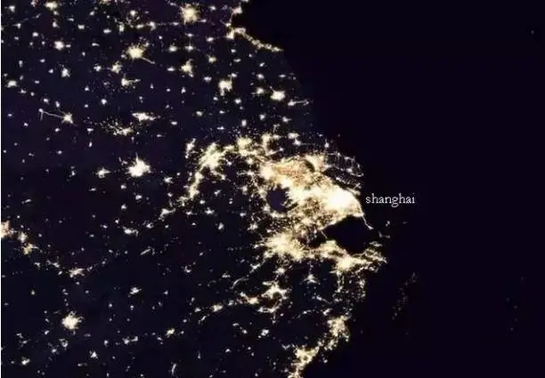 (图为上海及长三角的夜景)(2014年 NASA摄)