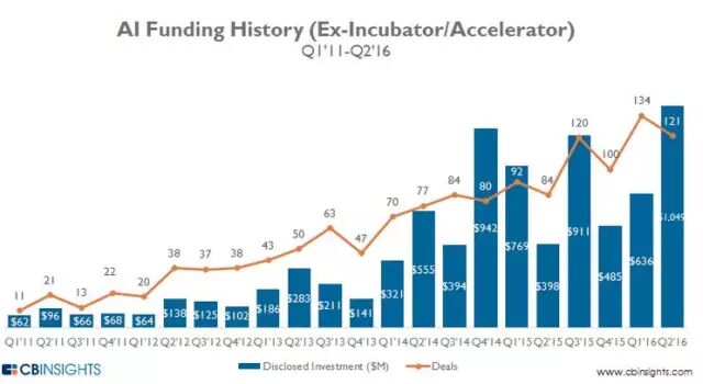 风投资本较少。据艾瑞咨询的数据显示,中国人工智能领域已有近百家创业公司,其中约65家获得投资,共计29.1亿元人民币(约合4.48亿美元)。而美国在2016年2季度AI投资已经超过10亿美元,远超中国在AI领域的投入。