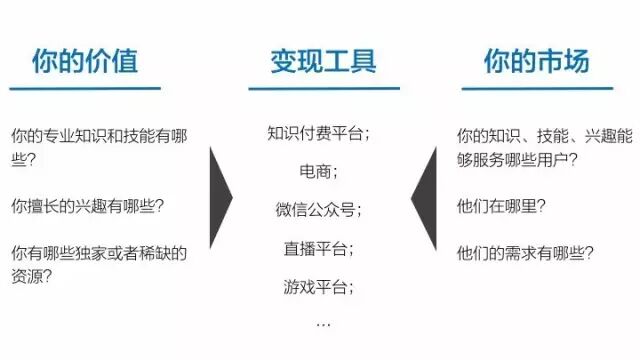 试试按照下面这张图先找到你的价值,再找到你的用户,最后匹配合适的变现工具。