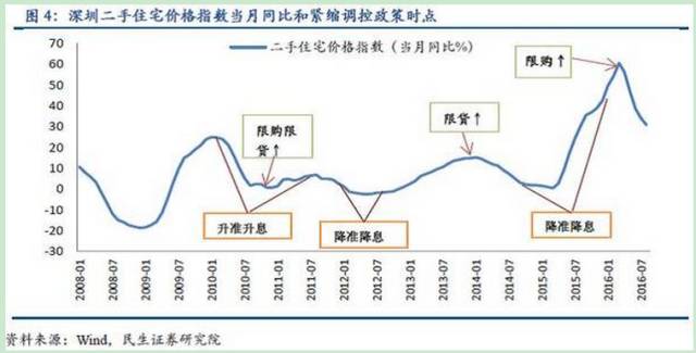调控期里一般房价很难上涨,下面是深圳调控后房价走势图,可以看出调控期内房价一般是调整或者下跌,但是一旦放开会立马上涨。