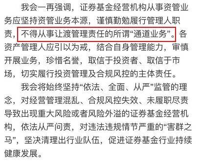 这次证监会提出的“不得从事让渡监管责任的通道业务”,是前面多年的监管思路的延续,表明监管的鲜明态度。