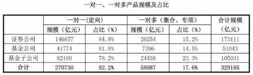 据券商中国,截至今年一季度,整个资管行业内“一对一”产品规模约为27.03万亿元。根据基金业协会统计,今年一季度,基金子公司一对一专户存续产品管理规模达8.21万亿元,公募基金存续的一对一专户规模为4.18万亿元,而相应的券商定向资管规模约为14.69万亿元。
