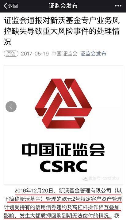 而此次新沃基金被处罚的乾元2号特定客户资产管理就是一只“一对一”的专户产品,在通过多次回购,以极高的杠杆集中持有债券,相关债券出现兑付违约后,导致回购交易无法偿付,直接将风险传导至多家其他金融机构。