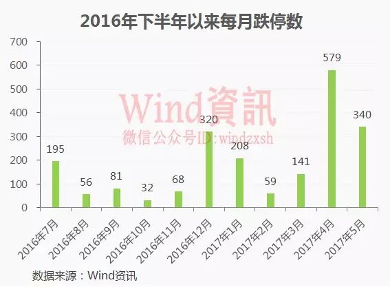 从跌停板家数统计来看,自去年7月份以来,去年下半年每月跌停家数多维持在100家次以内。而在去年12月份跌停数突破300家次后,今年来市场一只波动较大,特别是在刚刚过去的4月份,跌停数达到579家次,创出近期新高。而在5月份已经过去的三周时间,跌停数就达到342家次,情况也不容乐观。