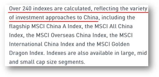 实际上,MSCI对中国市场一直“爱的深沉”。官网显示,有240个指数在跟踪中国市场: