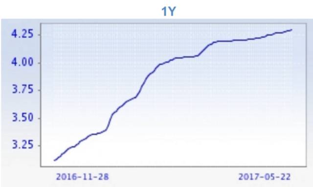 过去一个多月,一年期Shibor利率持续上行,累计涨幅达10个bp(基点)。事实上,从去年11月中旬至今,一年期Shibor利率整体呈现大幅攀升,从当时的3.03%上方直至如今的4.3137%。