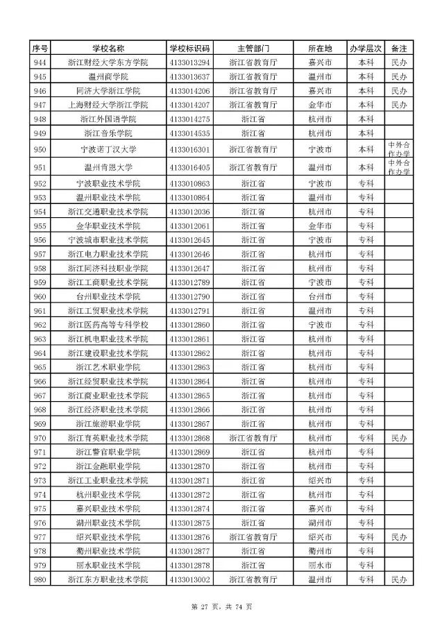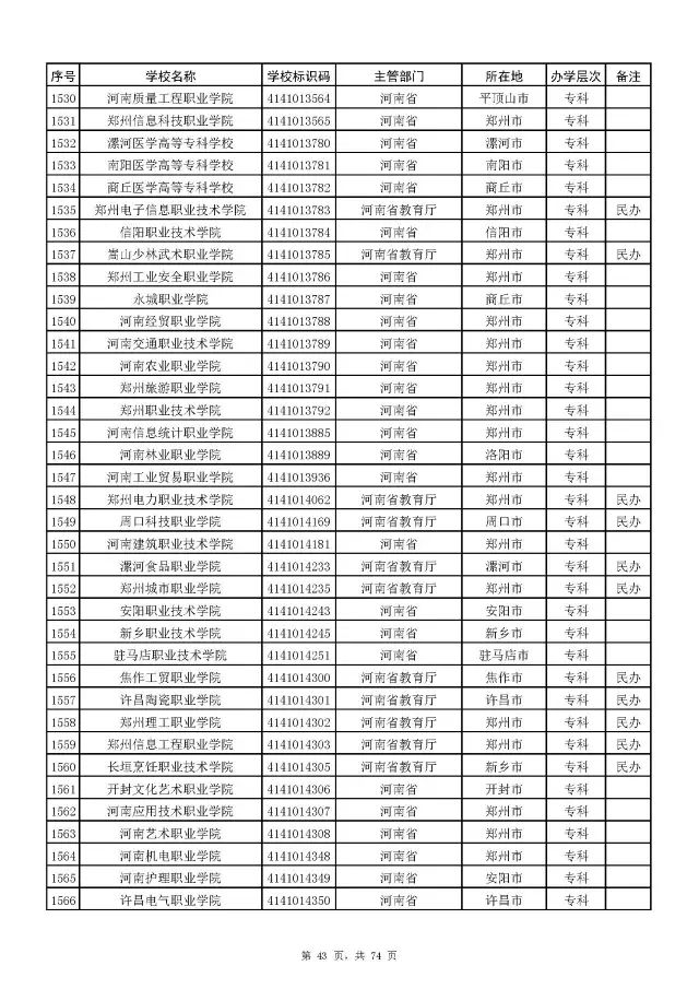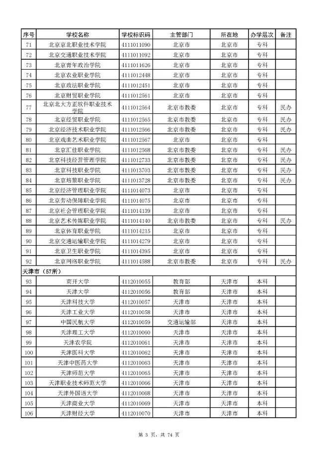 财经365讯:6月14日消息,日前,教育部发布《全国高等学校名单》。截至2017年5月31日,全国高等学校共计2914所,其中:普通高等学校2631所(含独立学院265所),成人高等学校283所。