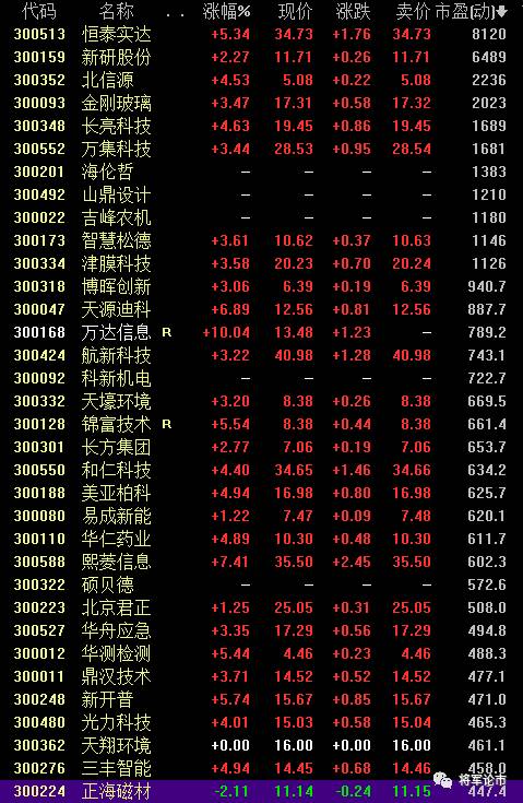 那么我们看一下今天暴涨的创业板,到底是那些股票在暴涨: