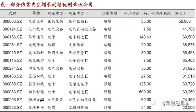 对很多创业板公司而言,外延式并购是重要的利润来源,因此能依靠内生增长的绩优成长股是难能可贵的。可从医疗、电子、通信、电气设备等细分领域寻找依靠内生增长仍然获得一定高增长的创业板公司,关注以下12股。