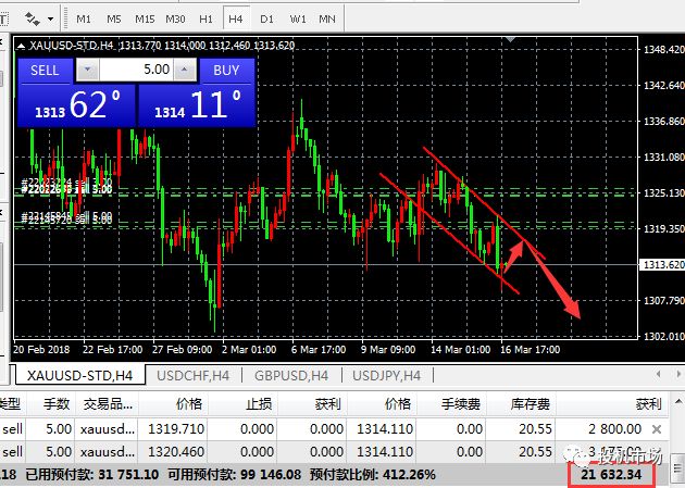 黄金操作策略:先看多,到1318-1320区间做空,止损损1322,下看1308-1305破位后继续中线持有